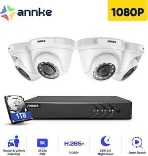 8CH H.265+ 3K Lite Wired Security Camera System with AI Human/Vehicle Detection, 4 x 1920TVL 2MP CCTV IP67 Cameras with Smart Dual Light for Outdoor Use, Color Night Vision, 1TB Hard Drive