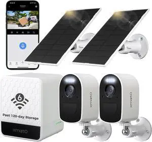 xmartO 4MP QHD WiFi6 Dual-Band Wireless Solar-Powered Indoor & Outdoor Home Security Camera System (Long Range WiFi, Free 64GB Loop Storage, No Monthly Fee, 2-CAM Kit)