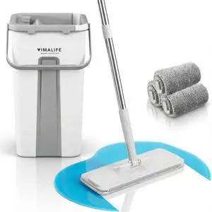 Micro Flat Mop & Bucket System, Hands-Free Wringing Floor Cleaning, 3 Washable & Reusable Microfiber Pads, Wet or Dry Usage on Wood, Marble, Tile, Laminate, Ceramic and Vinyl Floors