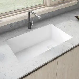 RUVATI RVG2033WH 31"x19" Undermount Granite Composite Sgl Bowl Kitchen Sink, Wht