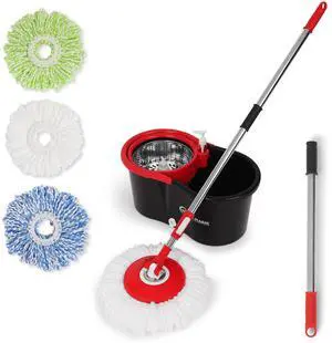 360° Spin Mop and Bucket with Wringer 3 High-Absorbent Microfiber Washable Heads Spinning Mop and Bucket Set for All Types Floor Cleaning (Black)