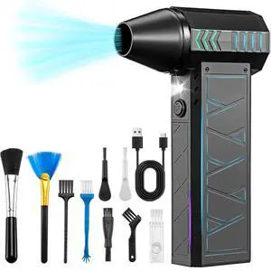 Compressed Air Duster, 180000RPM Electric Air Duster Whit LED Lighting & 9 Brush, 4 Gear Adjustable Turbo Fan, Cordless Air Blower Rechargeable, Air Duster for PC/Laptop/Keyboard/Car/Home Cleaner