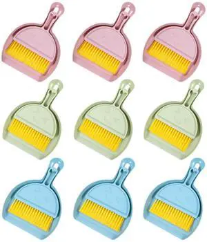 9pcs mini Broom and Dustpan Set Small Broom and Dustpan Set with Handle Portable Desktop Sweep Tools mini dustpans and Brush Sets for Car Interior,Cleaning Tools,Sofa3 Colors