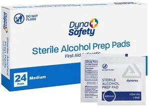 DynaSafety Sterile Alcohol Prep Pads - Medium - 70% Isopropyl Alcohol, Individually Wrapped, Soft Cleaning Wipes - Box of 24