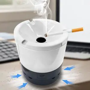 2 in 1 Multifunctional Ashtray, Indoor Ashtray - Melamine Material, Powered by AA Batteries, Easily Suck Away Scattered Ash Around (White)