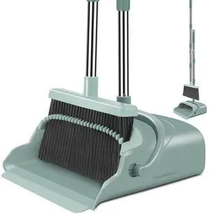 Upgrade Broom and Dustpan Set, Large Size and with Long Handle, Upright,Ideal for Indoor Outdoor Garage Kitchen Room Office Lobby Use (Green)