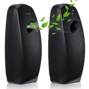 Automatic Air Freshener Spray Dispenser 2 Pack Wall Mounted Free Standing Restroom Air Freshener Battery Operated Automatic Sprayer Dispenser for Home Bathroom Commercial Time Scent(Black)
