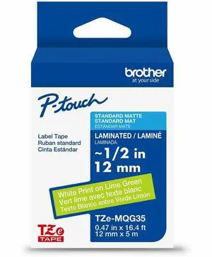 Brother Genuine P-touch TZeMQG35 WHT on LM GRN Label Tape Laminated 12mmX5m