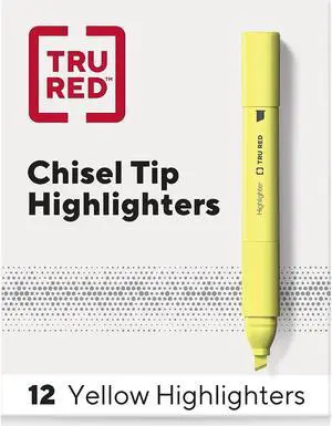 TRU RED Tank Highlighter with Grip Chisel Tip Yellow Dozen TR54579