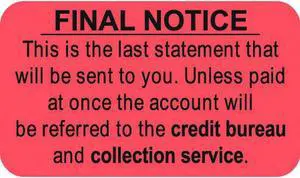 Billing Collection Labels, Fl Red - FINAL NOTICE, 1-1/2" X 7/8" (Roll of 250)