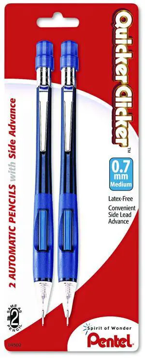 Pentel Quicker Clicker Mechanical Pencil 0.7mm HB Blue Barrel 2Pk PD347BP2K6