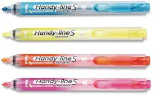 Ultra-Slim Handy-line S Retractable/Refillable Highlighters Assorted Ink Colors Chisel Tip Assorted Barrel Colors 4/PK SXS15BPS4M
