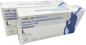 TRICARE MEDICAL Nitrile Exam Gloves, Low Derma, 3.5 Mil, Berry Blue, 2 Boxes of 100 Large