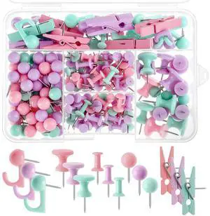 200 Pieces Push Pins Set, 5 Types Colorful Thumb Tacks Cute Decorative Push Pins for Wall Cork Board Bulletin Boards with Storage Box
