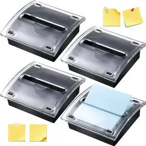 4 Pcs Pop up Sticky Notes Dispenser Sticky Note Holder Black Base Clear Top for 3 x 3 Inches Pad Holder for Acrylic Memo Organizer Fits Reminder School Office Home Store
