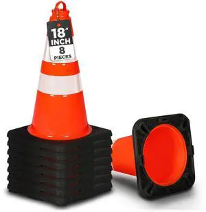 18" Traffic Cones 8-Pack, High-Visibility Orange Safety Cones for Parking, Roadwork, Construction and Sports Training, Stackable Design with Heavy-Duty PVC Base, Weather-Resistant