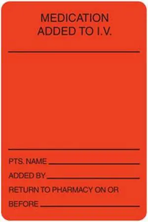 Med. Added I.V. 2" x 3" Fl-Red Label (Roll of 320)