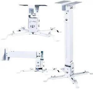 Projector Mount Ceiling/Wall - Universal 3-in-1 Bracket with Extension Pole, Height Adjustable Holder for LCD/DLP Projectors, Supports up to 44lbs (PM-003-W), White
