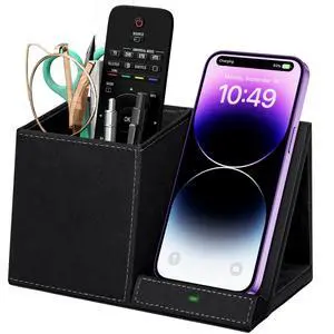 Glass Desk Whiteboard with Wireless Charger, Desktop Organizer Dry Erase White Board with Storage, to Do List Memo Notepad for Home and Office Supplies (Black & Gray)
