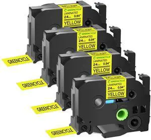 GREENCYCLE TZe-651 24mm 0.94 Laminated Yellow Tape Compatible for Brother P-Touch Black on Yellow TZ-651 TZe651 1 inch TZe TZ Tape for Ptouch PT-D600 PT-D610BT PT-P700 PT-P710BT, 4 Pack