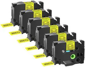 GREENCYCLE TZe-651 24mm 0.94 Laminated Yellow Tape Compatible for Brother P-Touch Black on Yellow TZ-651 TZe651 1 inch TZe TZ Tape for Ptouch PT-D600 PT-D610BT PT-P700 PT-P710BT, 6 Pack