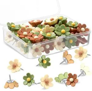 60 Pcs Cute Push Pins Decorative Push Pins Thumb Tacks Colorful Flower Pushpins, Flower Thumb Tack for Cork Board Wall Office Home(Coffee Color, Beige, Green)