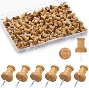 100Pcs Wood Push Pins, Thumb Tacks for Decorative, Wooden Pins and Tacks, Cork Board Thumbtacks, Cute Thumbtack for Wall and Bulletin Board, Map Pins