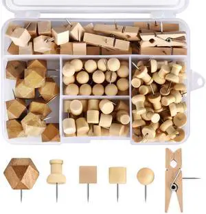 128Pcs Wood Push Pins, Thumb Tacks for Decorative, Wooden Pins and Tacks, Cork Board Thumbtacks, Cute Thumbtack for Wall and Bulletin Board, Map Pins