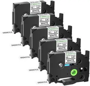 GREENCYCLE Extra Strength TZe-S231 12mm 0.47 Laminated White Tape Compatible for Brother P-Touch Black on White TZ-S231 TZeS231 1/2 inch TZe TZ Tape for Ptouch PT-D210 D220 H110 H100, 5 Pack