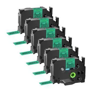 GREENCYCLE TZe-741 18mm 0.7 Laminated Green Tape Compatible for Brother P-Touch Black on Green TZ-741 TZe741 3/4 inch TZe TZ Tape for Ptouch PTD410 PTD400 PTD610BT PTD600, 6 Pack