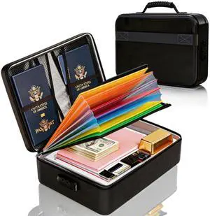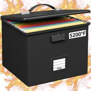 Fireproof Document Box with Lock,2-Layer File Box with Wheels,Collapsible File Storage Organizer with Pockets,Large Portable Home Filing Cabinet for Hanging Folders,Black,16''x13.8''x12.2''