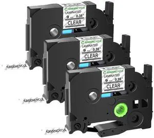 GREENCYCLE TZe-121 9mm 0.35 Laminated Clear Tape Compatible for Brother P-Touch Black on Clear TZ-121 TZe121 3/8 inch TZe TZ Tape for Ptouch PT-D210 D220 H110 H100, 3 Pack