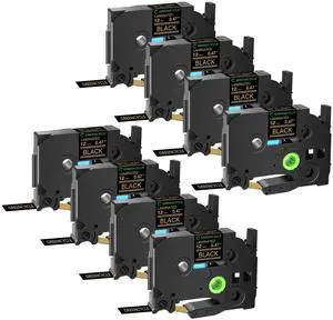 GREENCYCLE TZe-334 12mm 0.47 Laminated Black Tape Compatible for Brother P-Touch Gold on Black TZ-334 TZe334 1/2 inch TZe TZ Tape for Ptouch PT-D210 D220 H110 H100, 8 Pack