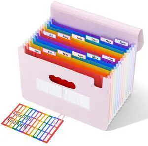 Expanding File Folder 12 Pockets Accordion File Organizer/Portable Expandable Plastic Filing Box, Accordion Bill/Paper/Document/Receipt Organizer Folders with Colored Tabs(A4/Letter Size)