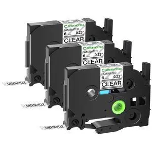 GREENCYCLE TZe-111 6mm 0.23 Laminated Clear Tape Compatible for Brother P-Touch Black on Clear TZ-111 TZe111 1/4 inch TZe TZ Tape for Ptouch PT-D210 D220 H110 H100, 3 Pack