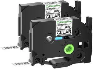 GREENCYCLE TZe-111 6mm 0.23 Laminated Clear Tape Compatible for Brother P-Touch Black on Clear TZ-111 TZe111 1/4 inch TZe TZ Tape for Ptouch PT-D210 D220 H110 H100, 6 Pack