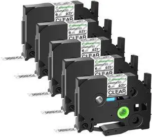 GREENCYCLE TZe-111 6mm 0.23 Laminated Clear Tape Compatible for Brother P-Touch Black on Clear TZ-111 TZe111 1/4 inch TZe TZ Tape for Ptouch PT-D210 D220 H110 H100, 5 Pack