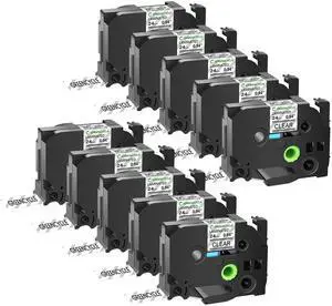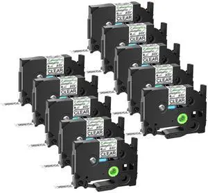 GREENCYCLE TZe-121 9mm 0.35 Laminated Clear Tape Compatible for Brother P-Touch Black on Clear TZ-121 TZe121 3/8 inch TZe TZ Tape for Ptouch PT-D210 D220 H110 H100, 10 Pack