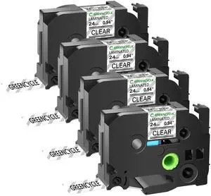 GREENCYCLE TZe-151 24mm 0.94 Laminated Clear Tape Compatible for Brother P-Touch Black on Clear TZ-151 TZe151 1 inch TZe TZ Tape for Ptouch PT-D600 PT-D610BT PT-P700 PT-P710BT, 4 Pack