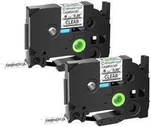 GREENCYCLE TZe-121 9mm 0.35 Laminated Clear Tape Compatible for Brother P-Touch Black on Clear TZ-121 TZe121 3/8 inch TZe TZ Tape for Ptouch PT-D210 D220 H110 H100, 2 Pack