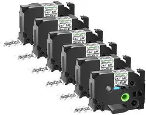 GREENCYCLE TZe-151 24mm 0.94 Laminated Clear Tape Compatible for Brother P-Touch Black on Clear TZ-151 TZe151 1 inch TZe TZ Tape for Ptouch PT-D600 PT-D610BT PT-P700 PT-P710BT, 6 Pack