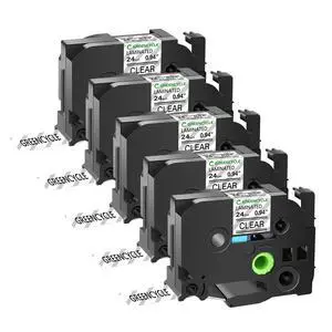 GREENCYCLE TZe-151 24mm 0.94 Laminated Clear Tape Compatible for Brother P-Touch Black on Clear TZ-151 TZe151 1 inch TZe TZ Tape for Ptouch PT-D600 PT-D610BT PT-P700 PT-P710BT, 5 Pack