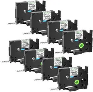 GREENCYCLE TZe-121 9mm 0.35 Laminated Clear Tape Compatible for Brother P-Touch Black on Clear TZ-121 TZe121 3/8 inch TZe TZ Tape for Ptouch PT-D210 D220 H110 H100, 8 Pack