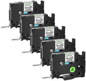 GREENCYCLE TZe-121 9mm 0.35 Laminated Clear Tape Compatible for Brother P-Touch Black on Clear TZ-121 TZe121 3/8 inch TZe TZ Tape for Ptouch PT-D210 D220 H110 H100, 5 Pack