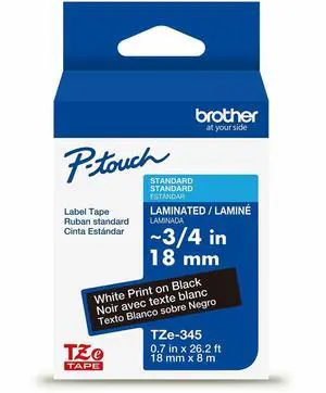 Brother Genuine P-touch TZe345 WHT on BK Label Tape Laminated 18mmX8m TZE345G