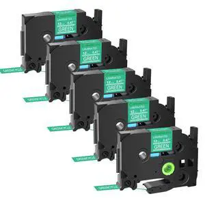 GREENCYCLE TZe-735 12mm 0.47 Laminated Green Tape Compatible for Brother P-Touch White on Green TZ-735 TZe735 1/2 inch TZe TZ Tape for Ptouch PT-D210 D220 H110 H100, 5 Pack