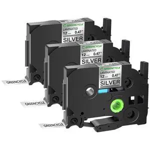 GREENCYCLE TZe-931 12mm 0.47 Laminated Silver Tape Compatible for Brother P-Touch Black on Silver TZ-931 TZe931 1/2 inch TZe TZ Tape for Ptouch PT-D210 D220 H110 H100, 3 Pack