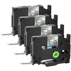 GREENCYCLE TZe-931 12mm 0.47 Laminated Silver Tape Compatible for Brother P-Touch Black on Silver TZ-931 TZe931 1/2 inch TZe TZ Tape for Ptouch PT-D210 D220 H110 H100, 4 Pack
