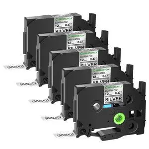 GREENCYCLE TZe-931 12mm 0.47 Laminated Silver Tape Compatible for Brother P-Touch Black on Silver TZ-931 TZe931 1/2 inch TZe TZ Tape for Ptouch PT-D210 D220 H110 H100, 5 Pack