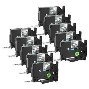 GREENCYCLE TZe-931 12mm 0.47 Laminated Silver Tape Compatible for Brother P-Touch Black on Silver TZ-931 TZe931 1/2 inch TZe TZ Tape for Ptouch PT-D210 D220 H110 H100, 10 Pack